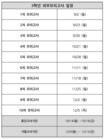 2024년도 3학년 2학기 모의고사 일정